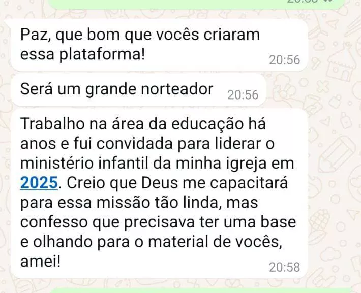 Com o Kit START, você não vai mais precisar preparar aulas do zero todos os domingos e nem ficar procurando recursos na Internet sem ter certeza da qualidade dos materiais. Todos os recursos que você precisa já estão disponíveis em nossa área exclusiva de membros.